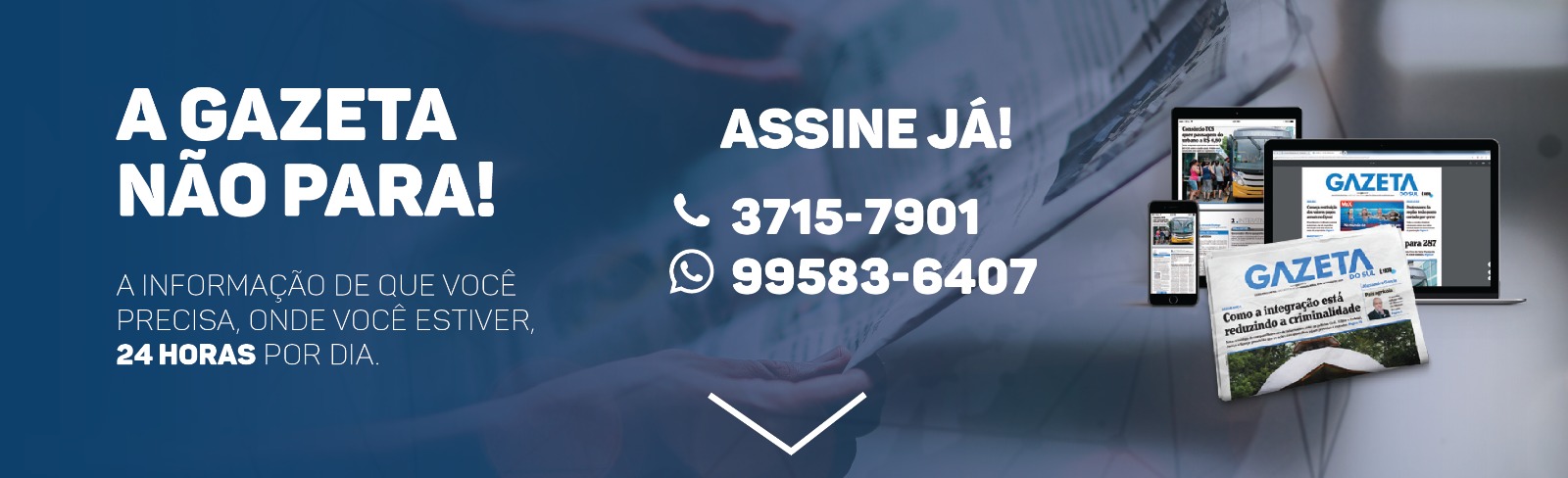 Acesso aos conteúdos do jornal digital Gazeta do Sul pelo site e pelo aplicativo. Edições do dia e edições anteriores. E com uma assinatura apenas, é possível acessar todo o conteúdo digital em mais de um aparelho (celulares, tablets ou computadores), o do assinante e mais uma pessoa. A assinatura dá direito a todos os benefícios do Clube do Assinante em mais de 50 estabelecimentos.
